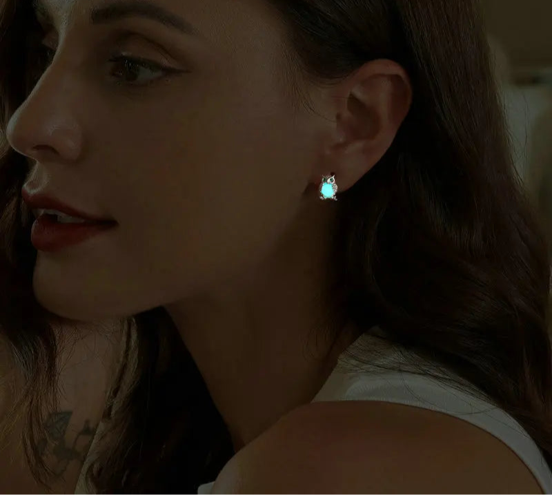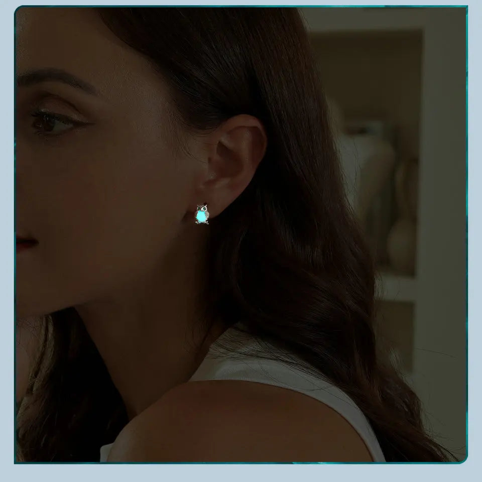 925 Sterling Silver Owl Stud Glowing in the Dark