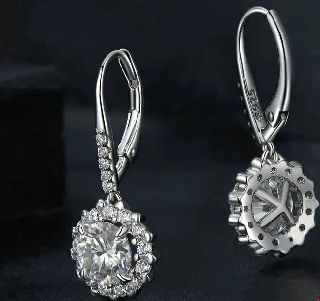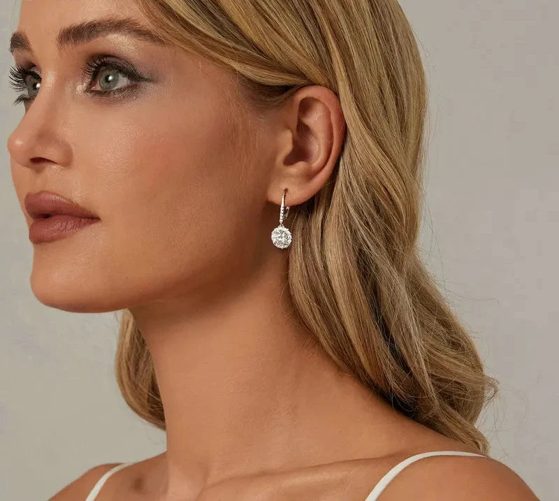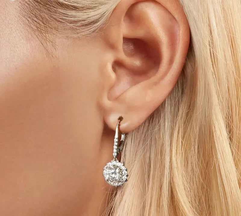 Description: The platinum-plated earrings with sparkling moissanite are small yet exquisite, simple yet fashionable. The shimmering light in the ear is always charming.