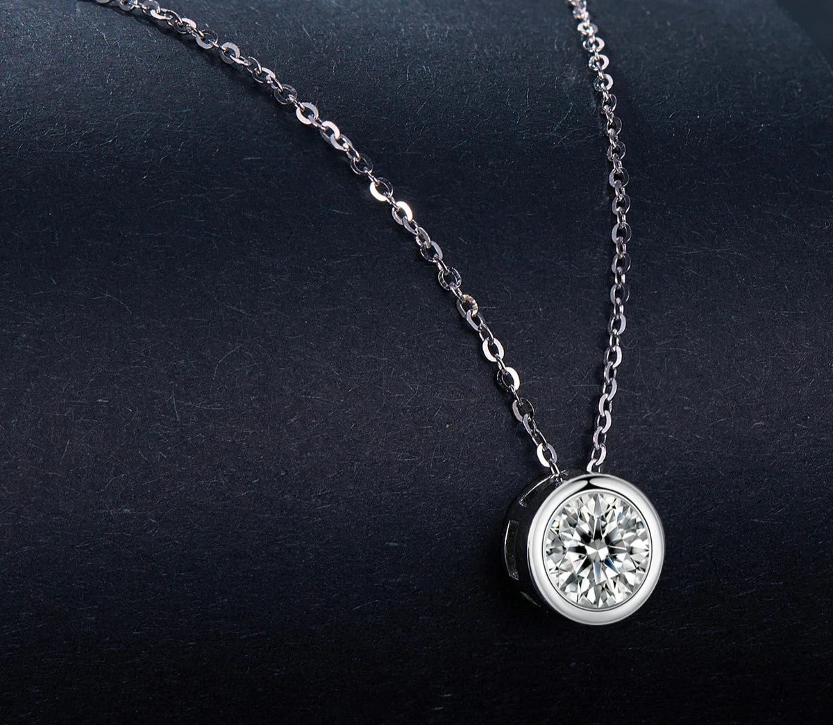 Bazel Moissanite Necklace 1 Carat 925 Sterling Silver