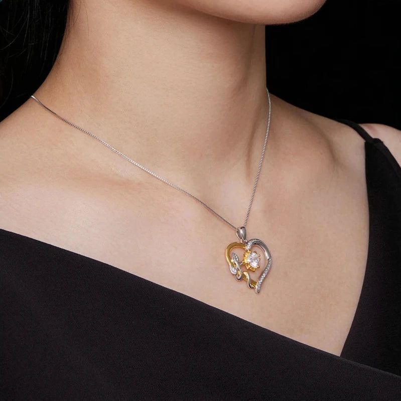 Crafted with elegance and sophistication, this necklace showcases a stunning 1 carat heart-shaped moissanite stone, expertly cut to reflect light and sparkle like a diamond. The unique flower design adds a touch of femininity. Enjoy the radiance of a diamond at a fraction of the cost with moissanite.