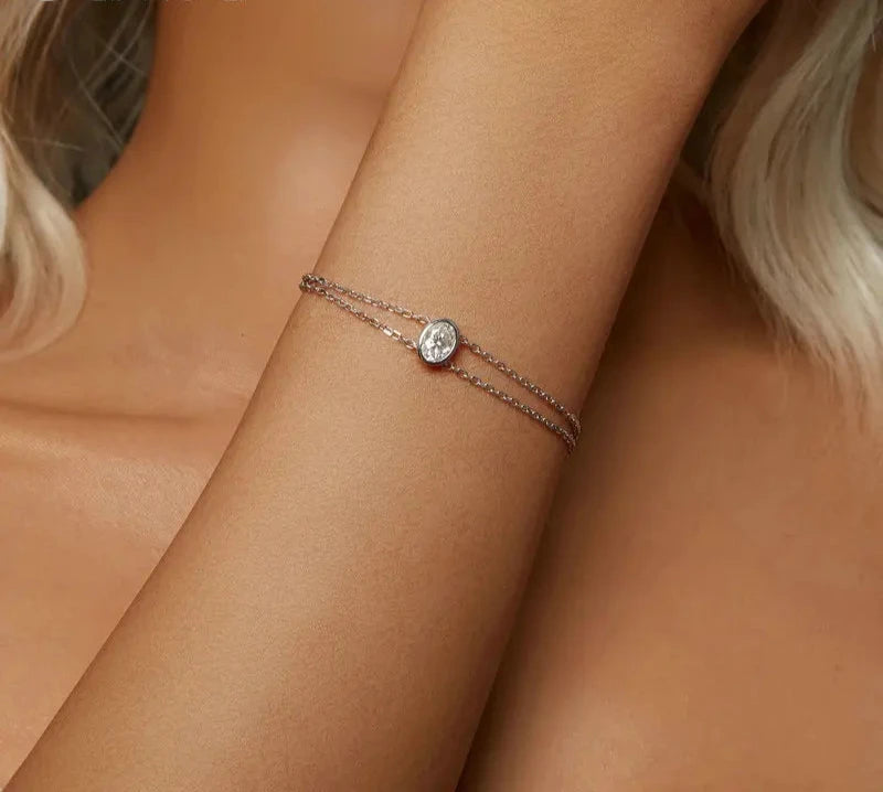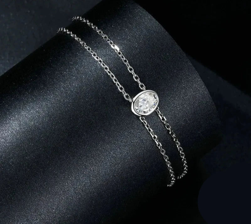 Bracelet Oval Shape 925 Sterling Silver Double-layer 1CT Moissanite