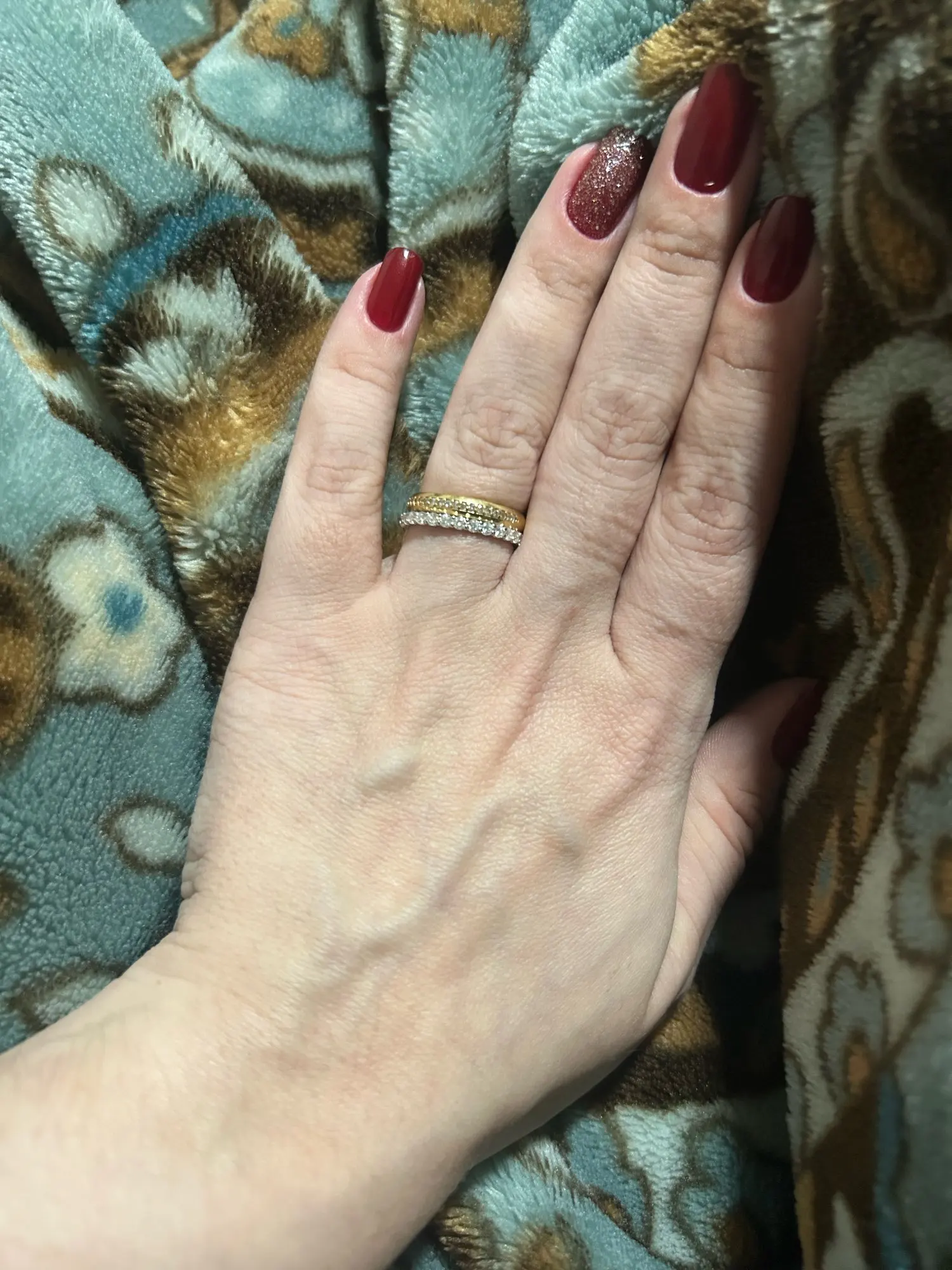 Description: The full inlay of fine sparkling moissanite encircles the ring like the stars in the vast galaxy, allowing the light to flow freely and exuding your ultimate elegance between fingers.