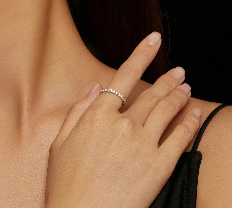 Ring Diamond 925 Sterling Silver Full Eternity Moissanite