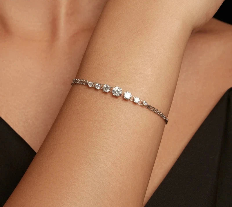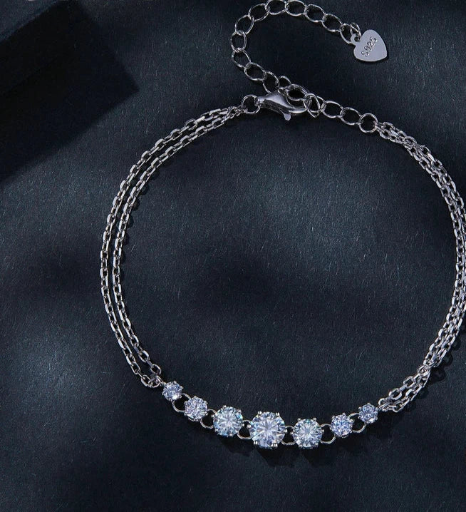 Sparkling Moissanite Bracelet Adjustable Strand 925 Sterling Silver