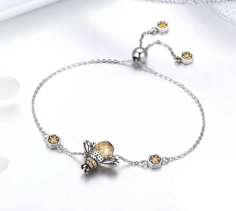 Dancing Honey Bee Chain Link 925 Sterling Silver