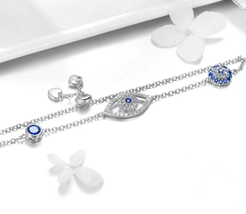Evil Eyes Bracelet/Guardian Eye 925 Sterling Silver Blue Zircon