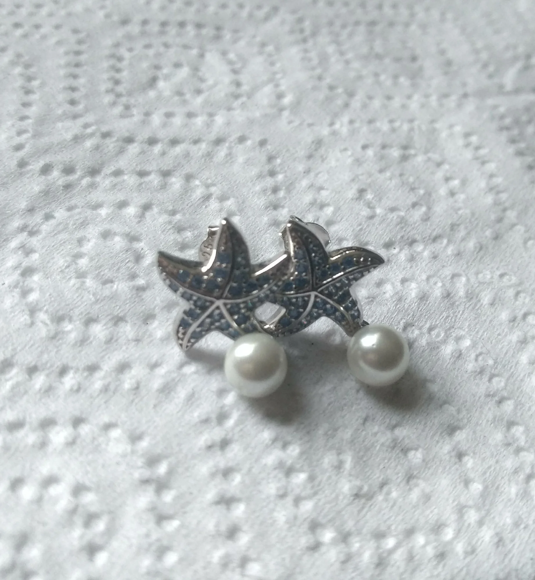 Ocean Blue Zircon Starfish Pearl Stud 925 Sterling Silver